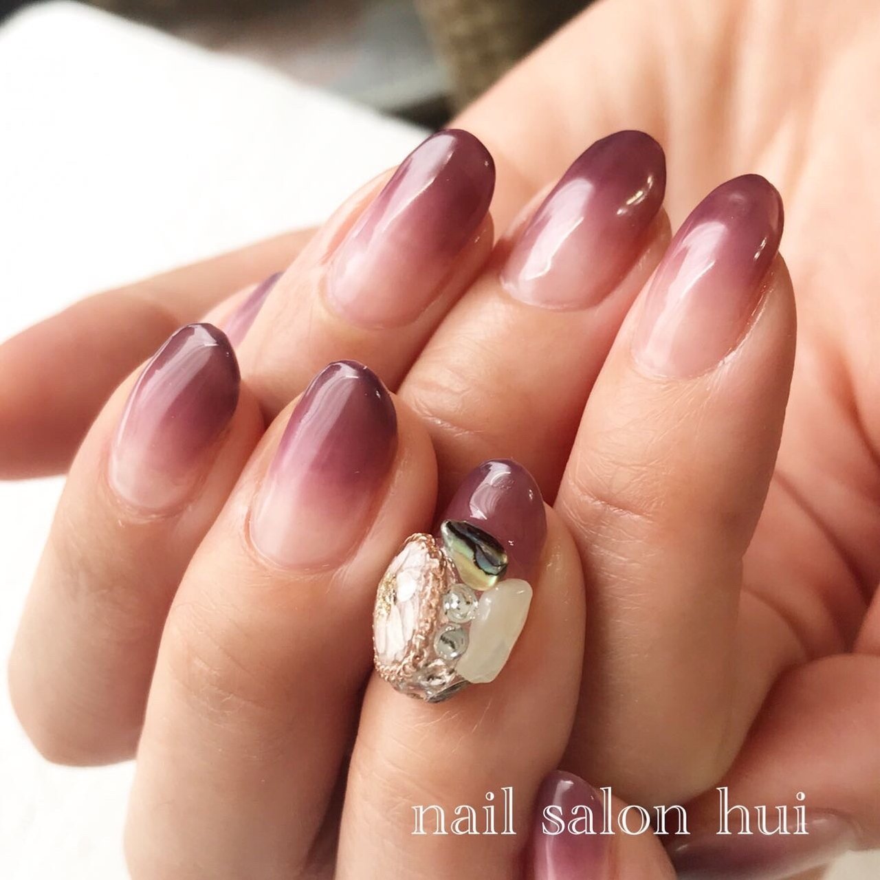 ハンド グラデーション ビジュー パープル ジェルネイル Nailsalon Huiのネイルデザイン No ネイルブック